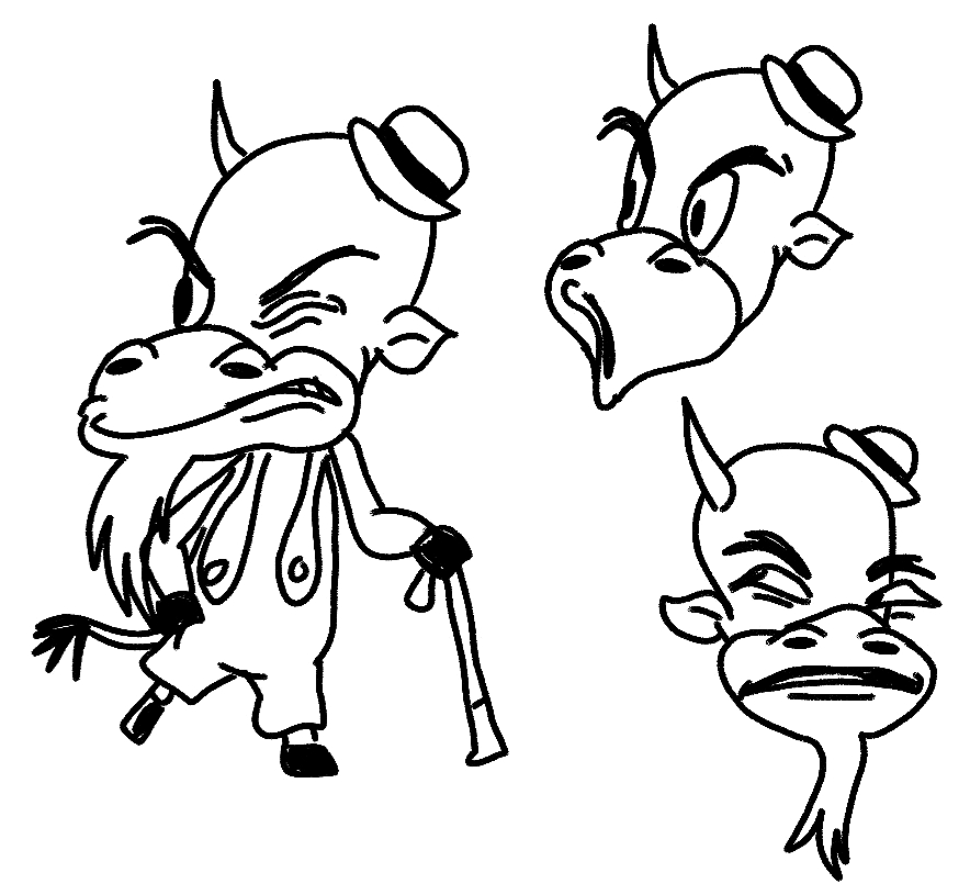 What you need to know about Grampy Goat is that he's one of the more complicated characters to draw. His hat places right on one of his trusty horns not on the head, it'll fall and not stay balanced.