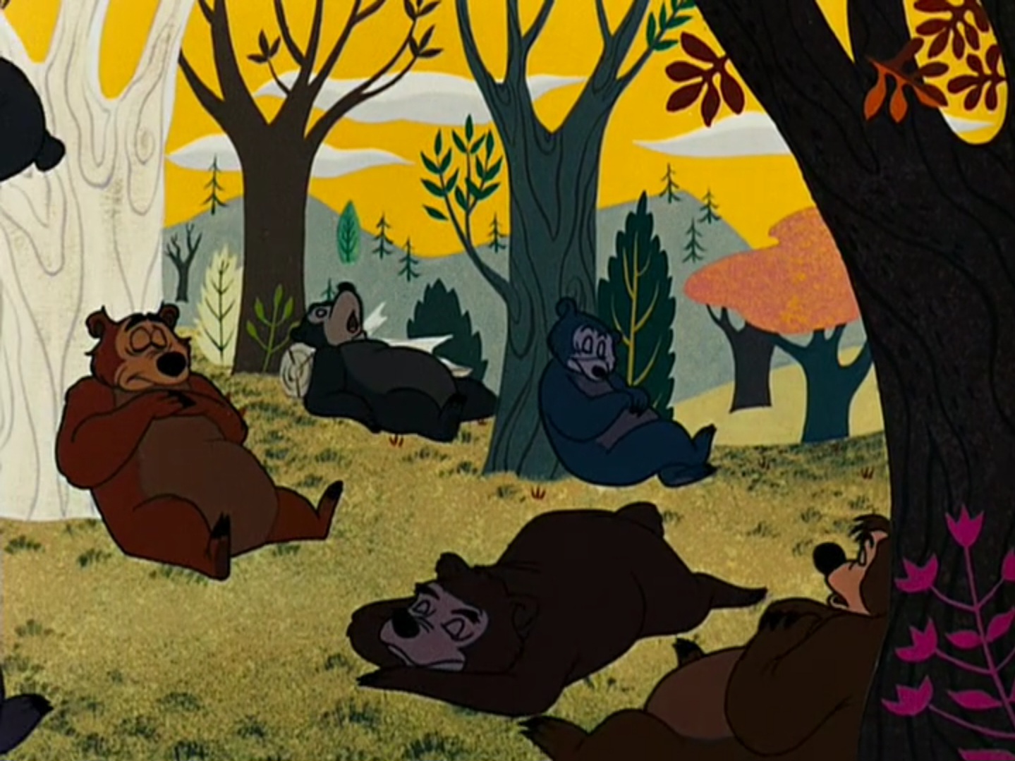This is from a Donald Duck cartoon titled Rugged Bear (1953), this has an amazing start with some yellow, beige and greens perfectly fitting the style of the forest.
